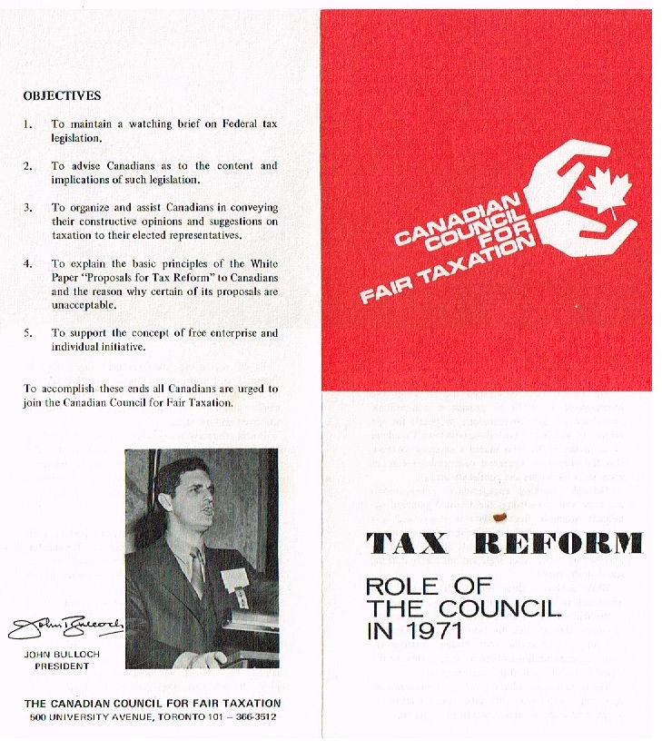 I had $50,000 in the bank of the Canadian Council for Fair Taxation. I was still getting 5-10 offers per day to speak publicly. And about 90% of my small business members said they would support me if I were to create a permanent body. The decision was made, and Jack Barrington, the retired President of the Mining Association, replaced John Hull as a member of our Board. See the attached brochure of the new Canadian Council for Fair Taxation, a permanent voice for small business.