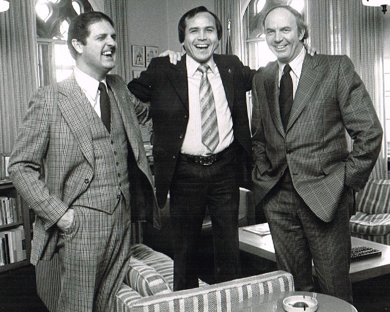 We had excellent relations with all the Ministers of Finance in the early days; John Turner, Donald MacDonald and Jean Chretien. From the photo, you can see the fun we're having at a 1976 meeting with Len Marchand, Minister for Small Business, and the Minister of Finance, Donald MacDonald. We lifted Len Marchand up onto the sofa.
