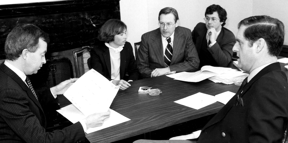 The real job, however, is building support amongst the opposition in Ottawa and the provinces. A substantive meeting was first held with Joe Clark, the Leader of the Official Opposition, and his new finance critic, Michael Wilson. Pat Johnston, our VP Legislative Affairs, and Jim Bennett, our Director National Affairs, are in the photo.