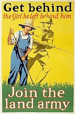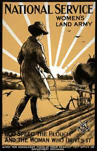 The Women's Land Army was started in Britain in WW1 when 3 million men went to war, leaving the farms desperately short of labour. The second ad is one from Britain at the time. The idea was copied in Canada, Australia, New Zealand and America.
