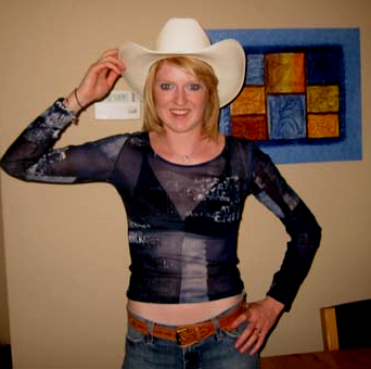 James and Verity met in Mississauga in September 2001 when Verity was going to college and working part-time in a local pub called the Lion and the Leprechaun. They moved back to Edmonton in December 2003, which was James' hometown. This photo was taken in Edmonton, where the locals love to wear their white Stetson hats.