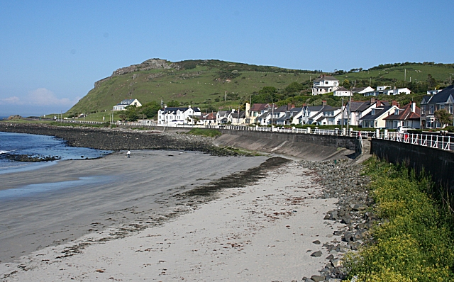 I was so excited by what he did because it was not long ago in 1947 that the family had been in Northern Ireland and actually visited Ballygally on the Antrim Coast. The photo is a postcard shot of Ballygally Beach with the town in the background. He sold all this heavy tweed in just four weeks. It would never wear out, that I can tell you. Dad used an end of the material to make me a pair of trousers.