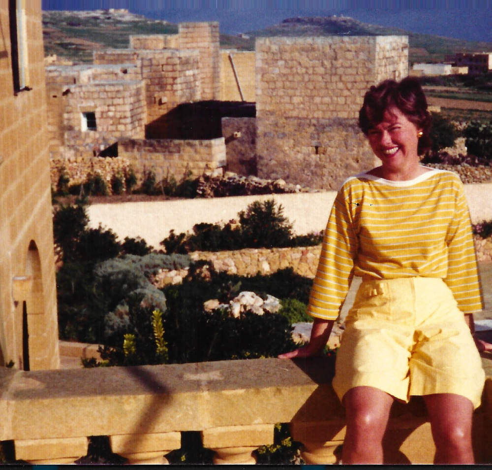 I had collaborated for a year with a PhD student from London University who was working on a new international definition of small and medium business. She in turn asked us to use her villa in Gozo, an island that is part of Malta. In the photo you can see Mary on the verandah of her villa.