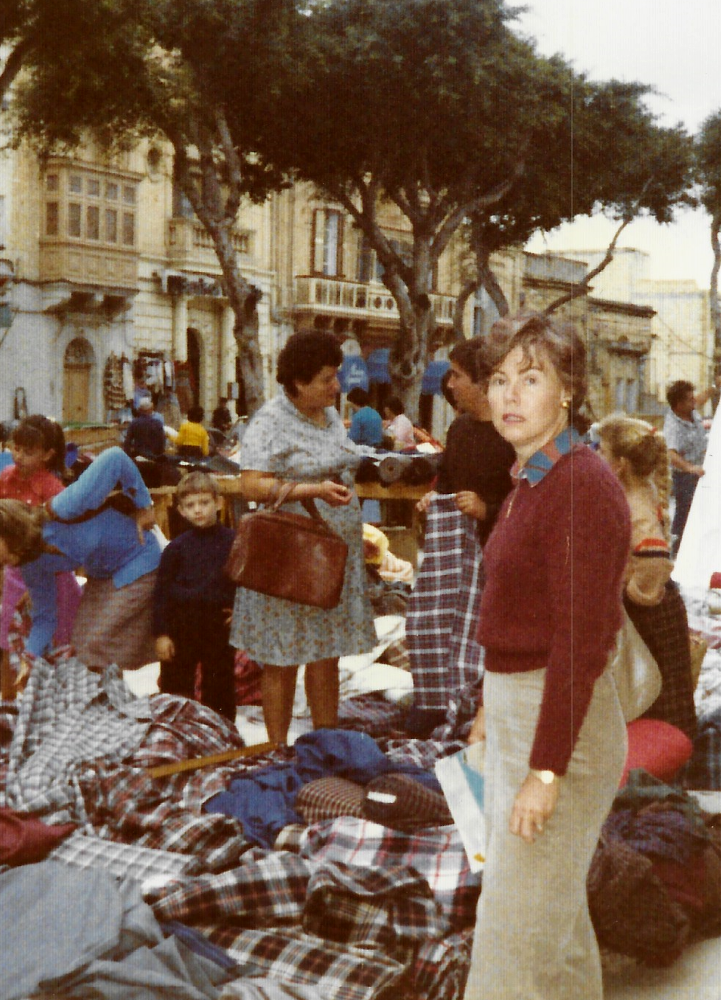 One night we watched a Shirley Temple movie dubbed in with the local language which they call Malti. It sounded like Arabic with a significant number of English, French and Italian words. The family that looked after the villa were wonderful people and spoke English and Malti. They had us over to their home, for dinner. We loved the food and the stone construction of their home. They looked like the people that worked in my father’s factory, all of whom came from southern Italy. In the photo Mary is shopping in the Gozo marketplace.