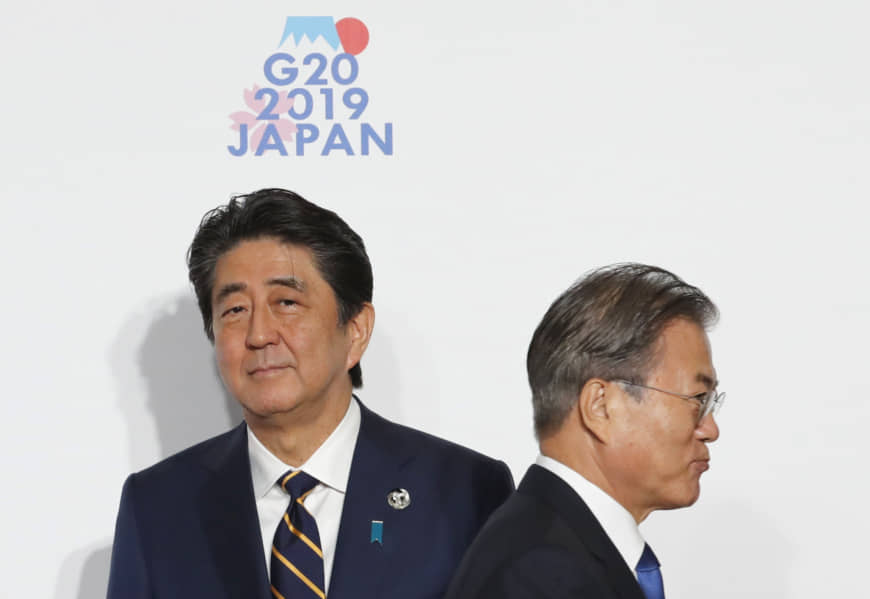 The photo of Moon-Jae of Korea and Shinzo Abe of Japan represents current tensions and new restrictions on the export of key Japanese component parts to South Korea. And in South Korea there is a movement to boycott the purchase of Japanese products. Yes, Koreans drive Japanese cars.