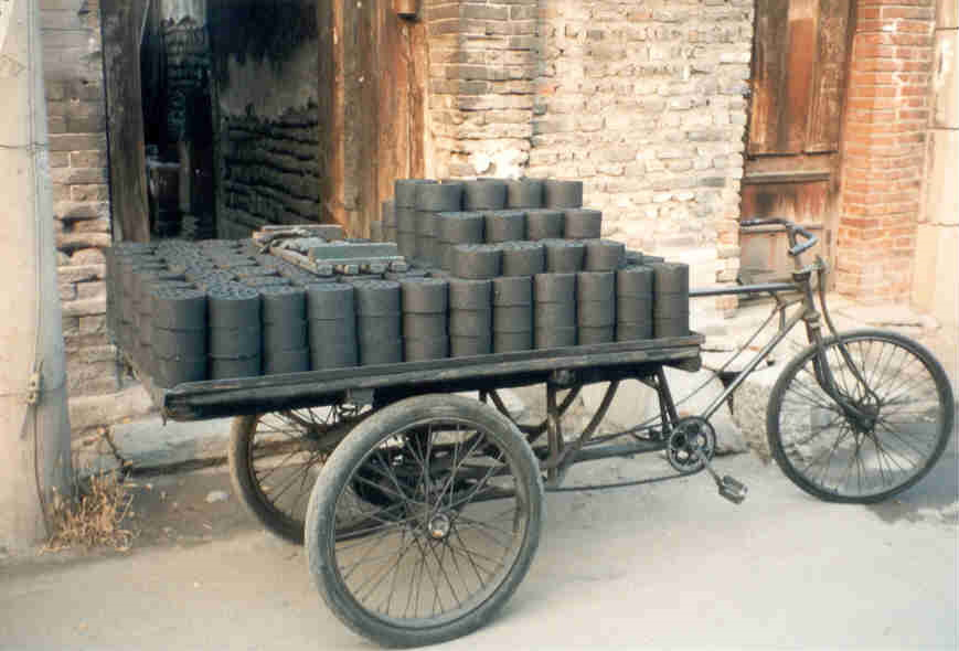 In 1985, while touring China, I saw bicycles used for transporting coal door to door. I asked about these round discs of coal and was told they were created from the fine dust that is removed when coal is washed to make it look pretty for export purposes. The dust and water are compacted to create a product that serves the domestic market.