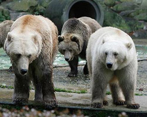And, if you are interested in northern excitement, our distressed polar bears are mating with grizzly bears that have moved north birthing what they call “grolar” bears. The photo shows the same process duplicated in a zoo, with a grizzly dad, a polar mum, and the big grolar on the left. It’s a new flexible hybrid specie that can eat a wider variety of foods. Seriously quirky.