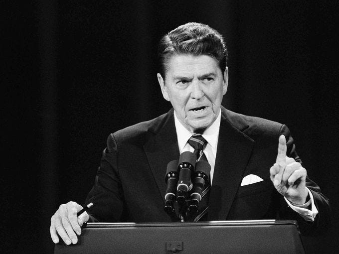 Then as part of my training, I was shown ten clips from President Reagan’s successful 1981 campaign in which he mixed a constant message about fighting communism with humour and sorrow. In all ten clips, he used a line from an old Cagney movie that was a real tear-jerker.