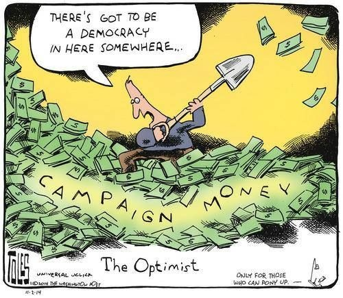 So corporate money in massive ad campaigns has, in my opinion, hijacked American democracy. Love the cartoon.