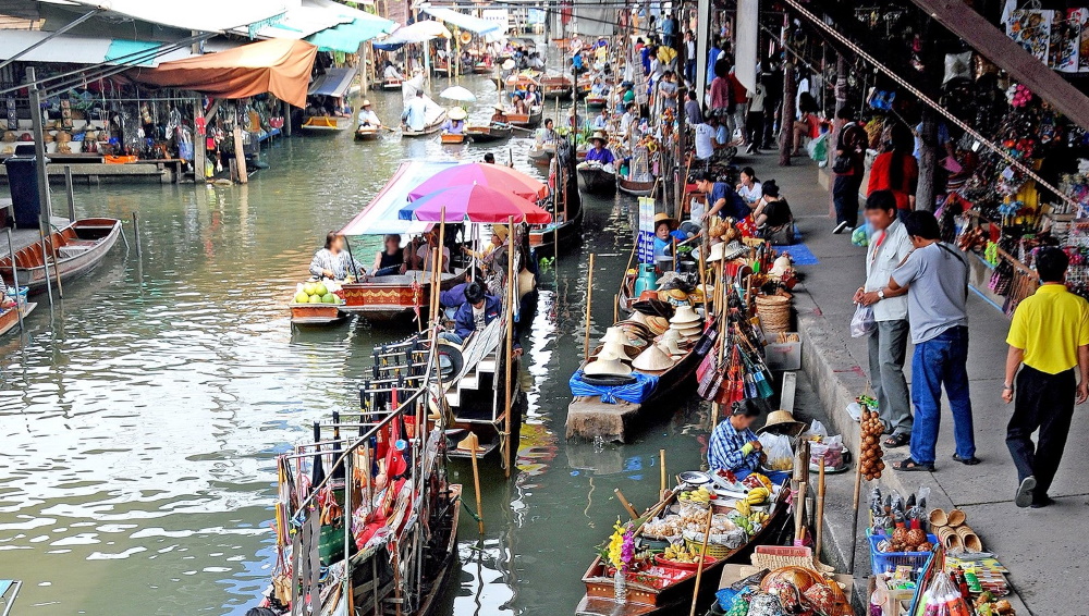 Mary and I travelled to Bangkok in 1977, and it was really something. Like visiting Paris in France, or Venice in Italy. Everything is so colorful. People travelling by small boats loaded with vegetables heading to one of their local sea markets. Like the photo.