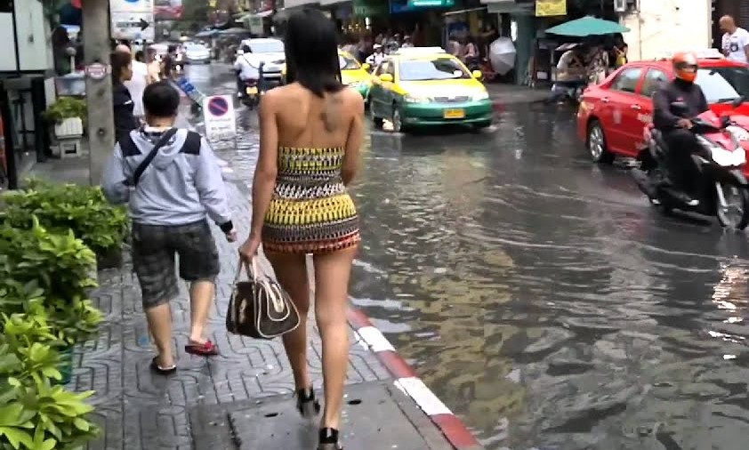 Today, however, Bangkok is one of those cities threatened by climate change and the rising oceans. I remember having to take off my shoes and socks to cross the road. It was just like the photo of the flooded main street.