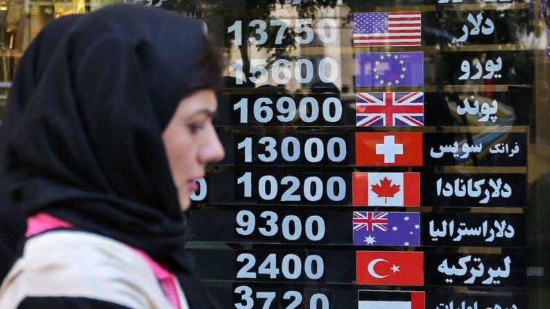 The result has been a massive decline in the value of its currency, the Rial. The photo shows the value of the Rial in a range of foreign currencies.